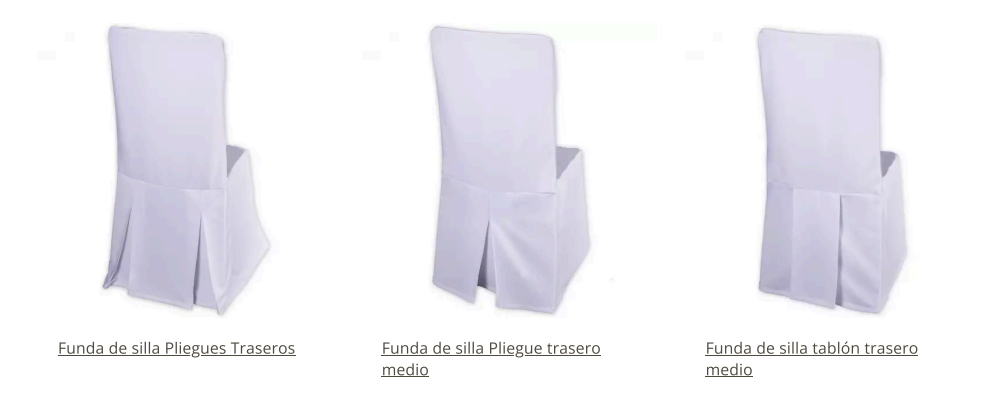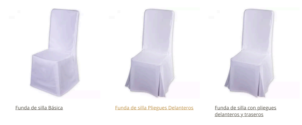En nuestro catálogo encontrarás fundas con pliegues delanteros y traseros, fundas básicas y opciones a medida para cualquier tipo de silla. Estas fundas no solo aportan elegancia sino también funcionalidad, siendo fáciles de colocar y mantener.